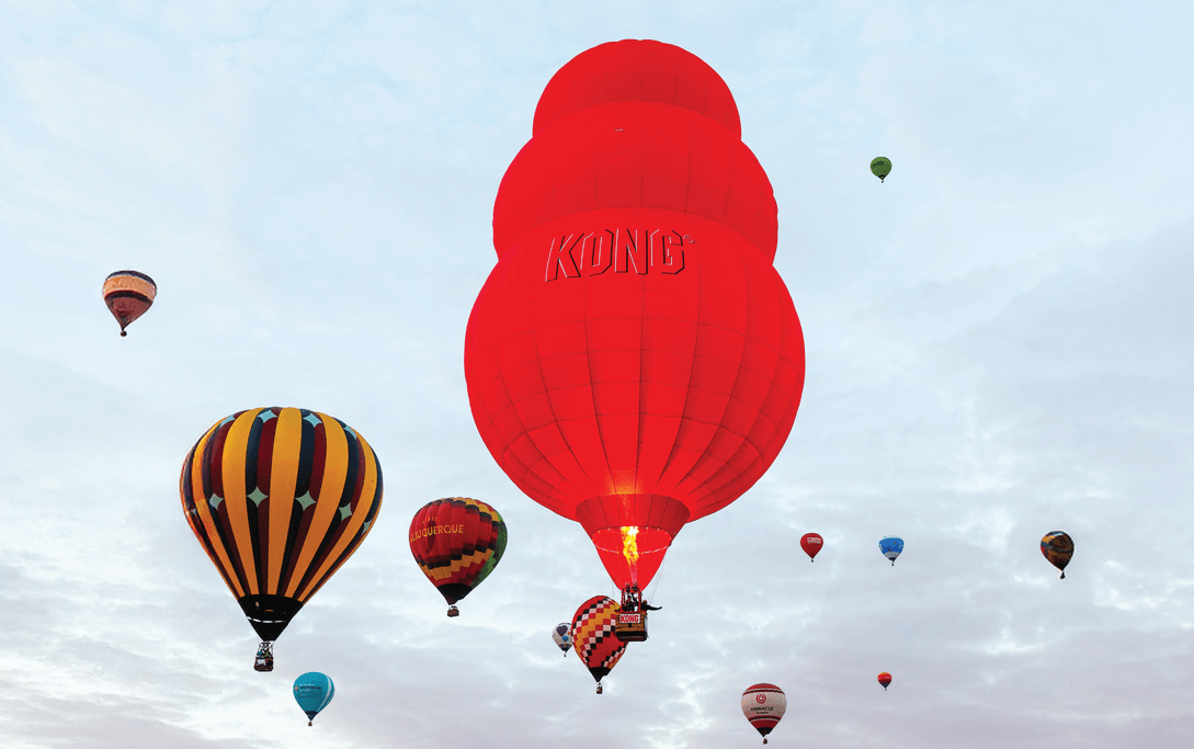 This decade is all about exploring new ideas. To reach more pets than ever before, we've done exciting things like bringing an animated pup to life on the Vegas Sphere, launching a KONG-shaped hot air balloon, and producing a limited-edition blue KONG in collaboration with Volkswagen and VCA Charities.