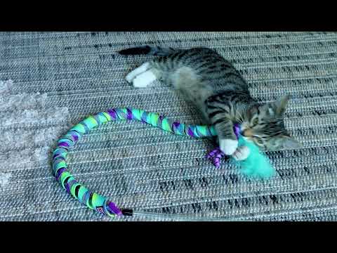 The corkscrew curl’s the key to the kitty party at the end of this glittering wand. Crazy-fast recoil sealed into the durable woven spirals mean when your cat pounces onto the feather and ribbon target, they’re rewarded with more wild, high-speed springing action launching them into further fun.