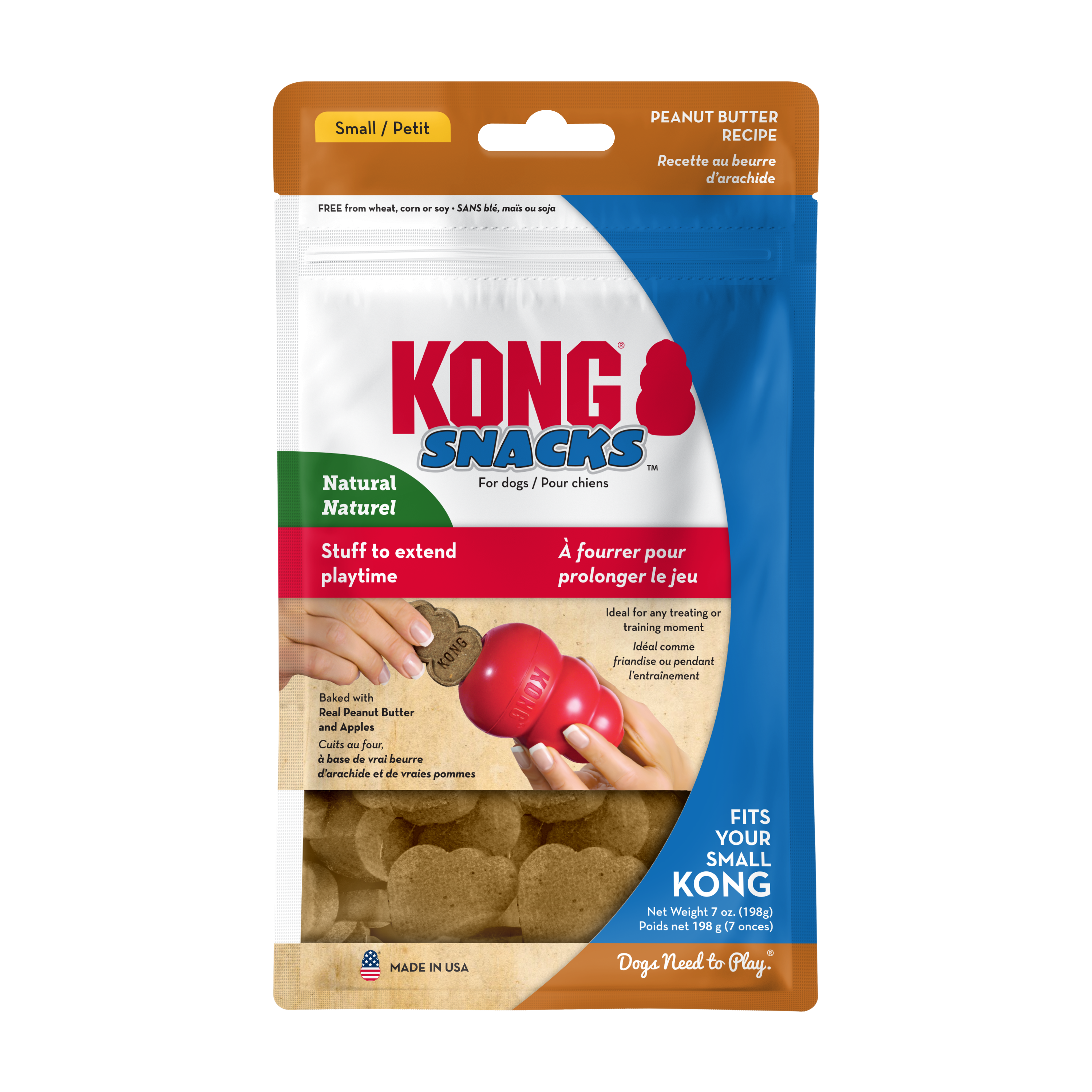 KONG Peanut Butter Snacks are made with delicious flavor for a biscuit that is delightful for dogs. Made in the USA, these high-quality treats are naturally good with an irresistible flavor that is great for any treating moment. This smaller size is specially shaped and sized to fit your dog's small KONG rubber toy.
