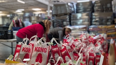 That's why Colorado Pet Pantry and American Red Cross step in with Pet Comfort Kits. In April, KONG donated hundreds of bags, toys, treats, and enrichment items for these kits, aiming to provide comfort and stability to pets during times of crisis.